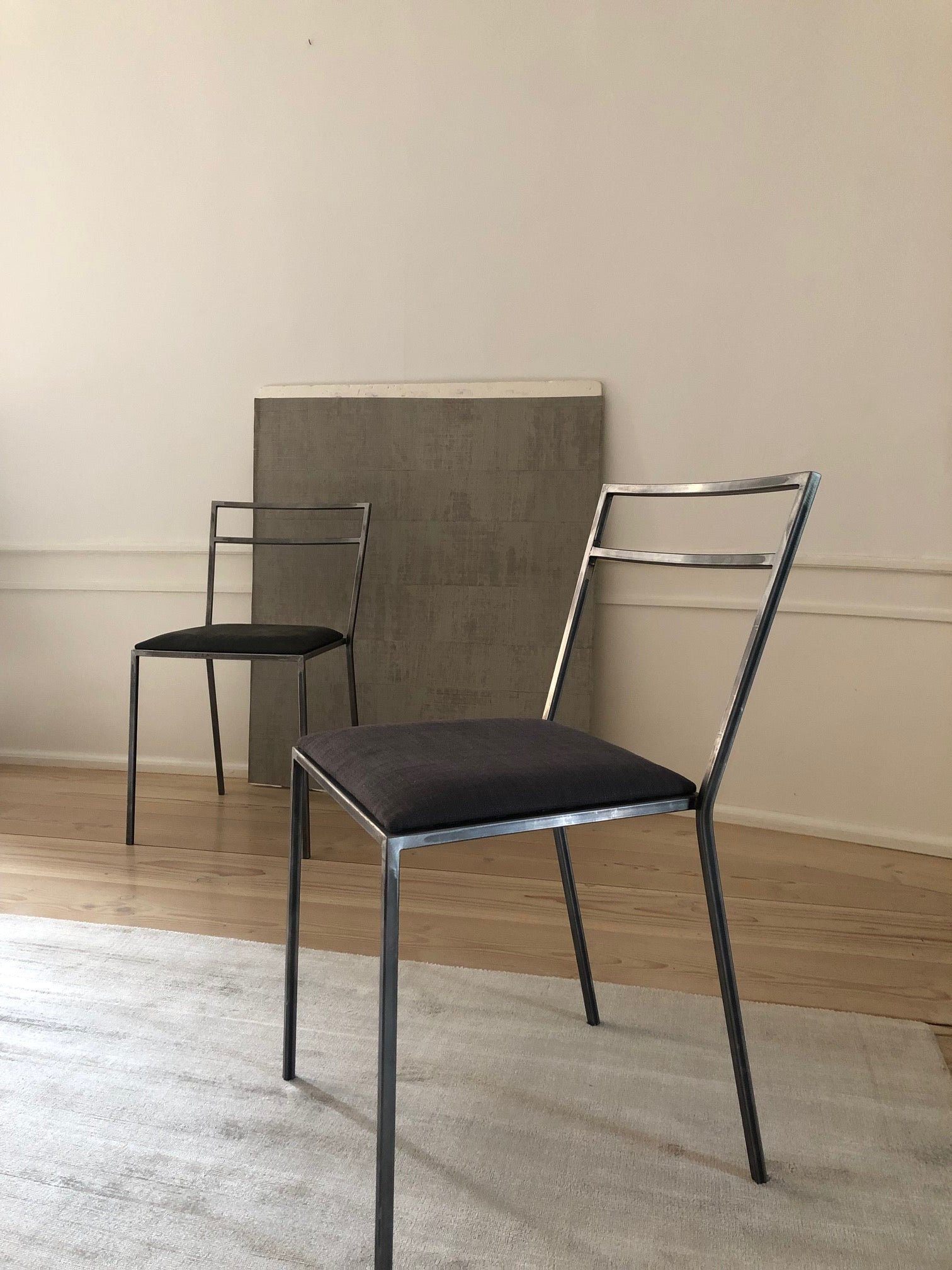 Minimalist in form, grounded in material. This chair pairs a sleek metal frame with a soft leather seat, an industrial touch softened by luxury.